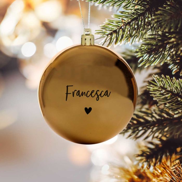 Ancora una novità, care fate del Natale e babbi natale, per la decorazione del vostro albero di Natale, che quest'anno, come sapete e come sempre, dovrà essere ancora più bello/spettacolare/colorato, ma soprattutto più originale dell'anno scorso. E quando diciamo "originale", ci riferiamo, ad esempio, alla nostra pallina per albero di Natale personalizzabile con cuore, che potete personalizzare con il vostro testo. Il tutto viene fornito con un cordoncino per appenderlo (high-tech, appunto...) e si può anche scegliere il colore.